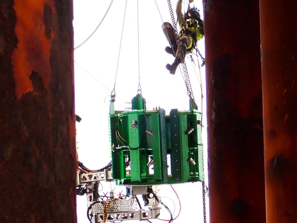 First, the CAT was used for cleaning the entire length of the relevant section of the caisson. Subsea cleaning is often considered necessary before commencing other subsea operations, like an inspection, because of marine growth covering the surface of components.